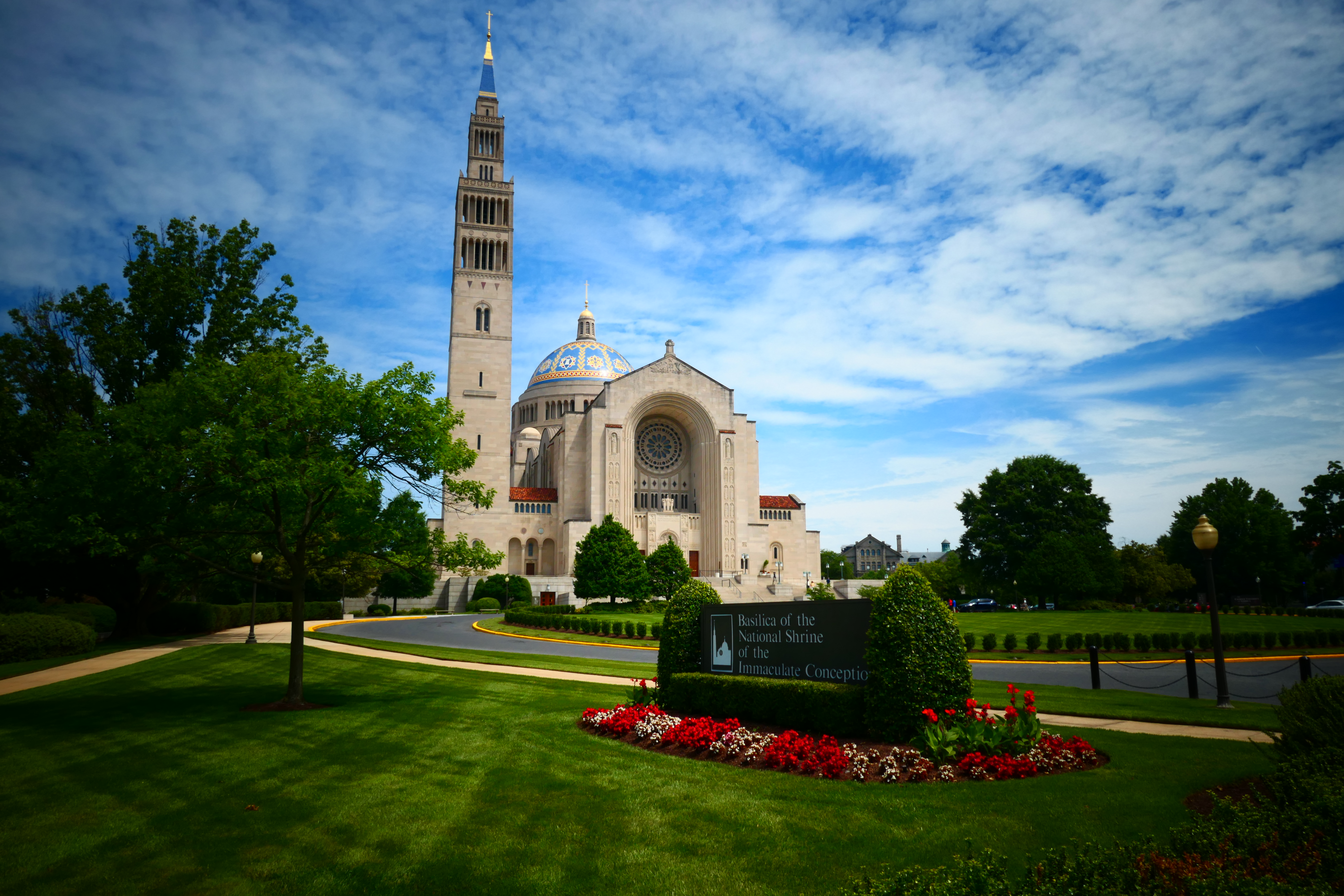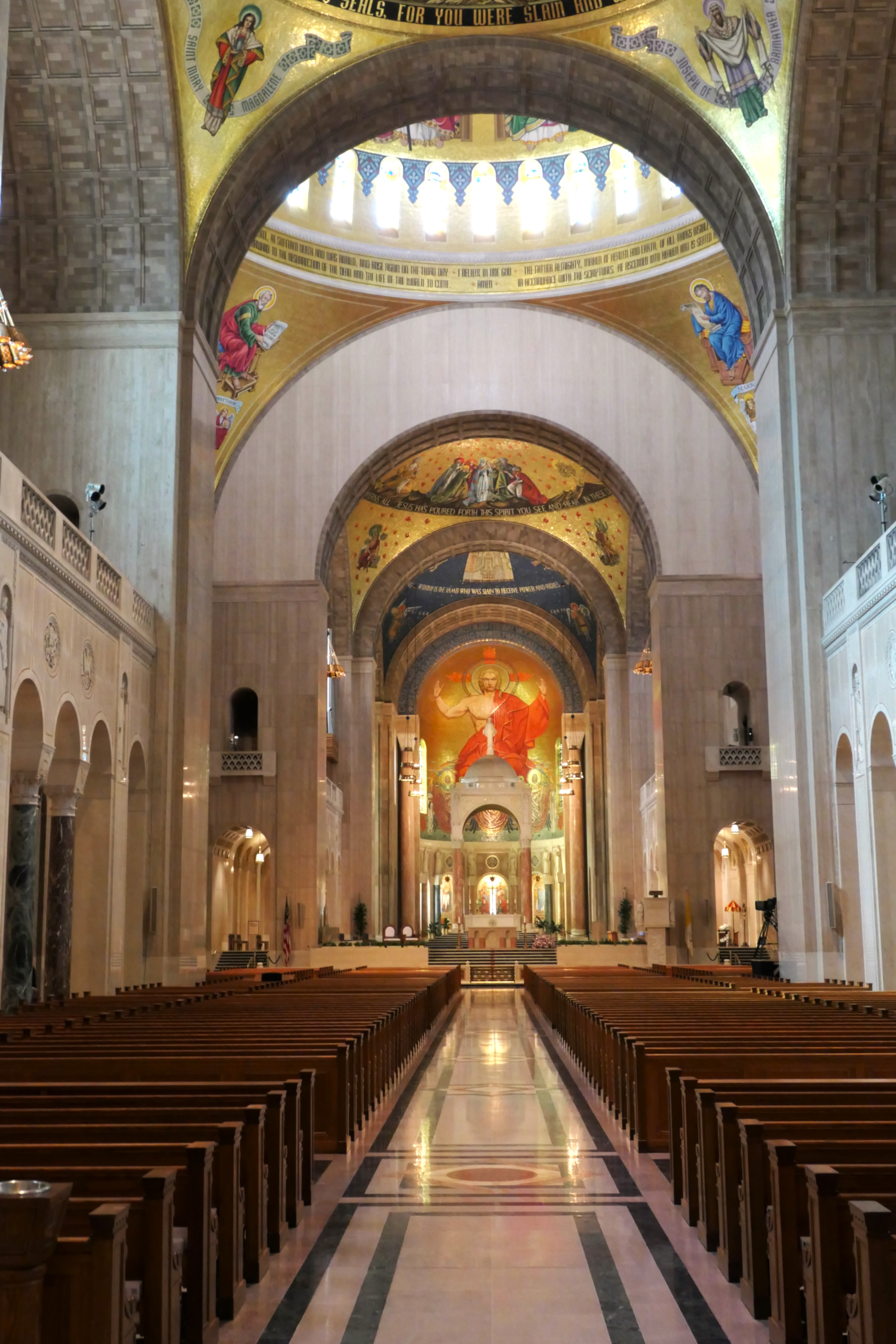 „Think big“ – groß denken. Das haben sich wohl damals auch die Verantwortlichen des Bistums Washington D.C. gedacht, als sie um das Jahr 1920 begannen, auf der grünen Wiese am Rand der City der amerikanischen Hauptstadt ein riesiges katholisches Zentrum zu errichten, mit einer Universität, einem Priesterseminar, Verwaltungs- und Gästehäusern. Zentral aber war der Bau einer neuen Kirche von gewaltigen Ausmaßen, die als Konkathedrale des Bistums dient. Der „National Shrine of the Immaculate Conception“ zählt zu den 10 größten Kirchen der Katholischen Welt. 1959 wurde sie eingeweiht. Im Geist des Jugendstils und mit Anleihen an die romanische Kirchenarchtiktur wurde sie mit Mosaiken ausgestaltet und beherbergt Mariendarstellungen der wichtigsten Wallfahrtsorte aus den Herkunftsländern der Einwanderer, die über die Jahrhunderte nach Amerika gekommen sind. Im Zentrum steht jedoch ein anderes Bild.
